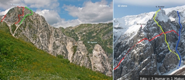 Opis: Kljub temu, da je višji od Malega Kuntarja ne ponuja vrh toliko plezalnih možnosti kot nižji soimenjak.