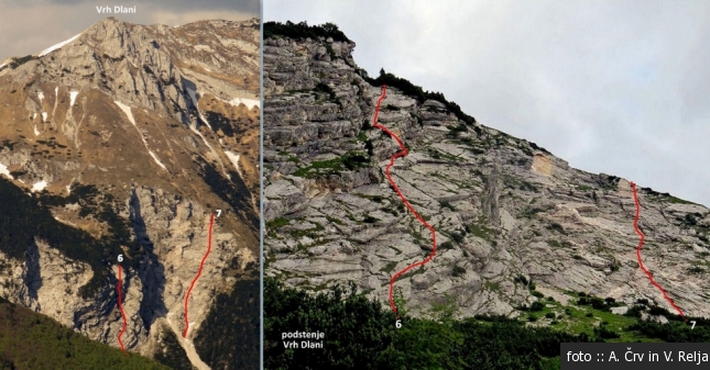 V steni Vrh Dlani sta kot že v mnogih stenah Peči pustila svoje sledi dva osivela plezalca, ki očitno tu uživata in iščeta vedno bolj zanimive prehode. Rado in Tone sta v zadnjih letih spustila ročno, neraziskani tereni njima bližjih sten so mlada upokojenca kljub dolgim pristopom pričakali v očitno dobri formi.