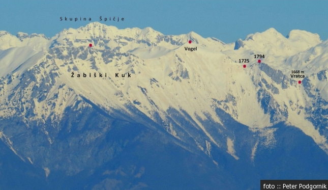 Opis: Z bohinjske strani je Vogel lepe piramidaste oblike, v strmi severni, vzhodni in južni strani je speljanih nekaj alpinistično smučarskih smeri, katerih potek pa je le približno znan.