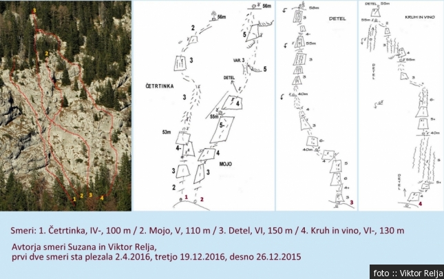 Opis: Zakonca Suzana in Viktor Relja sta zopet dokazala, da se marsikje, tudi sredi gozda najde zanimiva skalna stena, v kateri se lahko spleza marsikaj lepega v odlični kamenini.