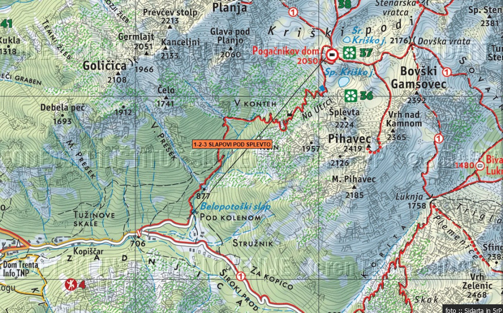 Dostop: Po markirani planinski poti iz Zadnjice proti Križkim podom; ko zavije steza levo, nadaljuješ po strugi Belega potoka. Slediš desnemu kraku, ki te pripelje pod Spodnji slap.