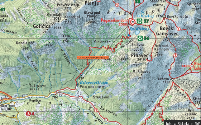 Sestop: Sestopaš tako, da greš proti levi, na pot, ki prihaja s Kriških podov.